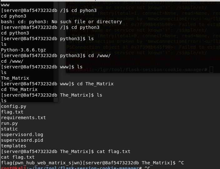 )源码中泄露了SECRET_KEY=KEY_SECRET_PWN_HUB(自己补全两个*为UB),可以重新计算cookie。但是遇到了一个坑,python2计算出来的结果不对,必须python3才可以