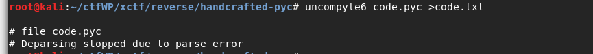 可以执行,但是看不到实际运行的代码,所以需要把实际的代码逆向出来,这个转换出来实际是object code ,object code和pyc文件只是相差一个文件头,补齐文件头尝试反编译