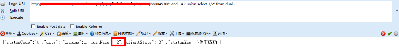 and 1=2 union select 'null','null'...... from dual 返回正常,说明第二个字段是字符型,反之为数字型