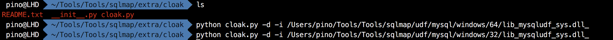 还有一个需要注意的是,sqlmap里的udf.dll是通过异或编码的,使用之前一定要记得解码,解码的工具也在sqlmap中,